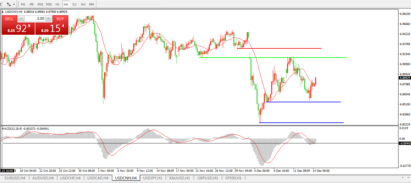 备选策略: 在6.9200之上,看涨,目标价位为6.9300,然后为6.9557。
