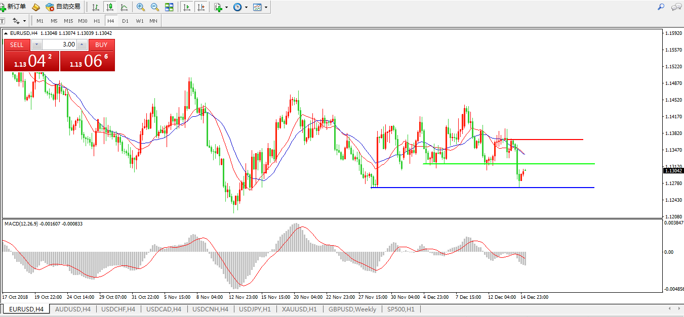 欧元兑美元EURUSD 4小时图:
