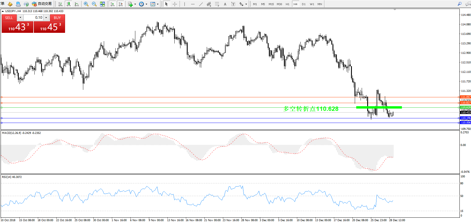 交易策略:110.628下方看跌,目标110.196、110.006