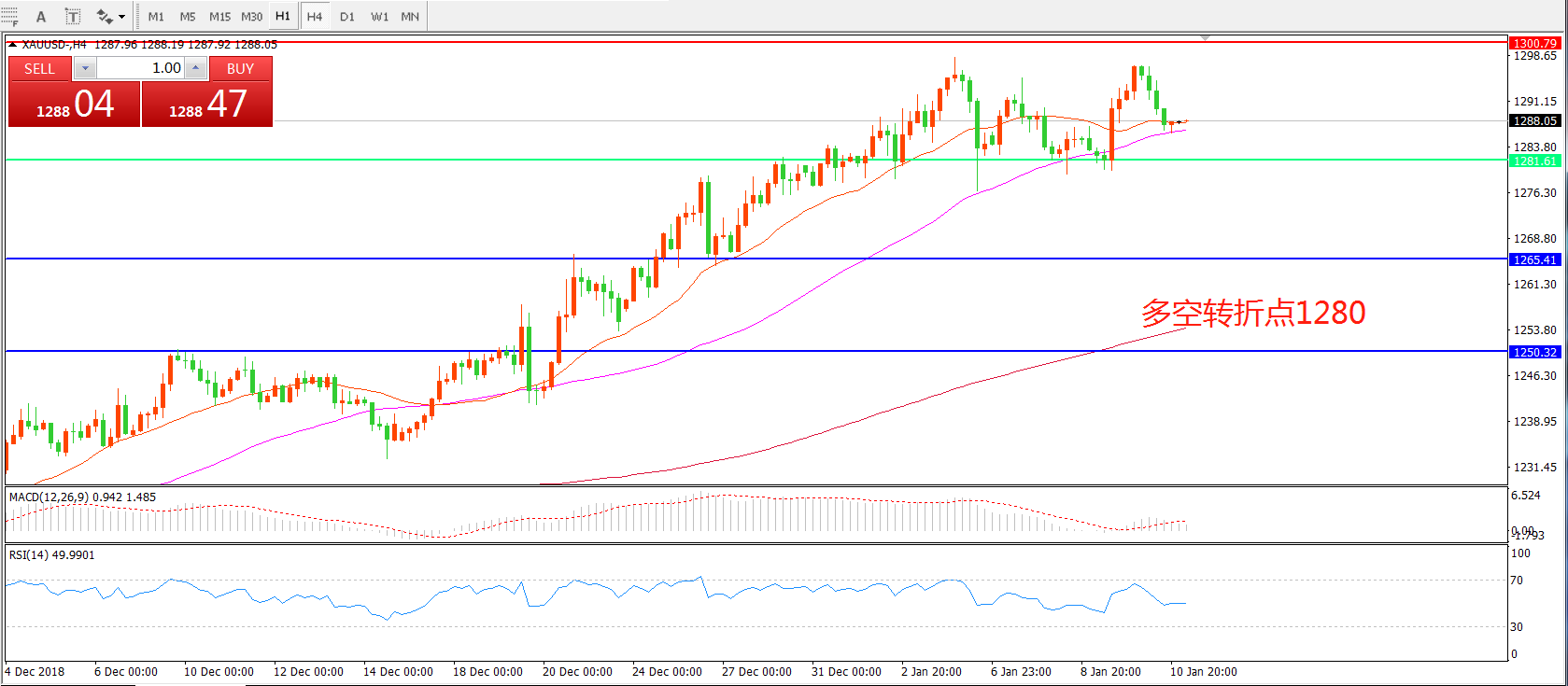多空转折点:1280.00