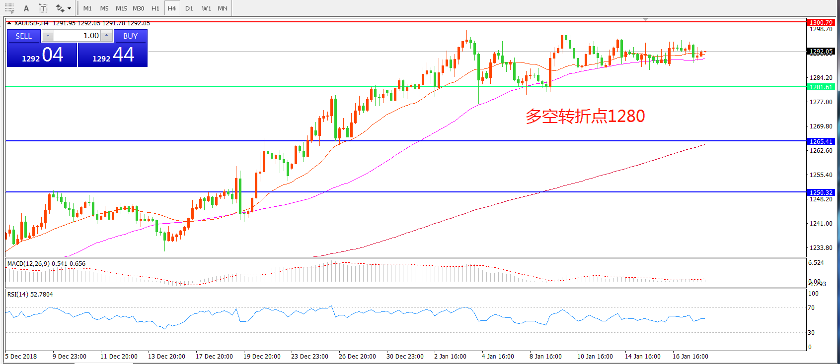 交易策略:在1280.00之上看涨,目标1300.00  1319.00