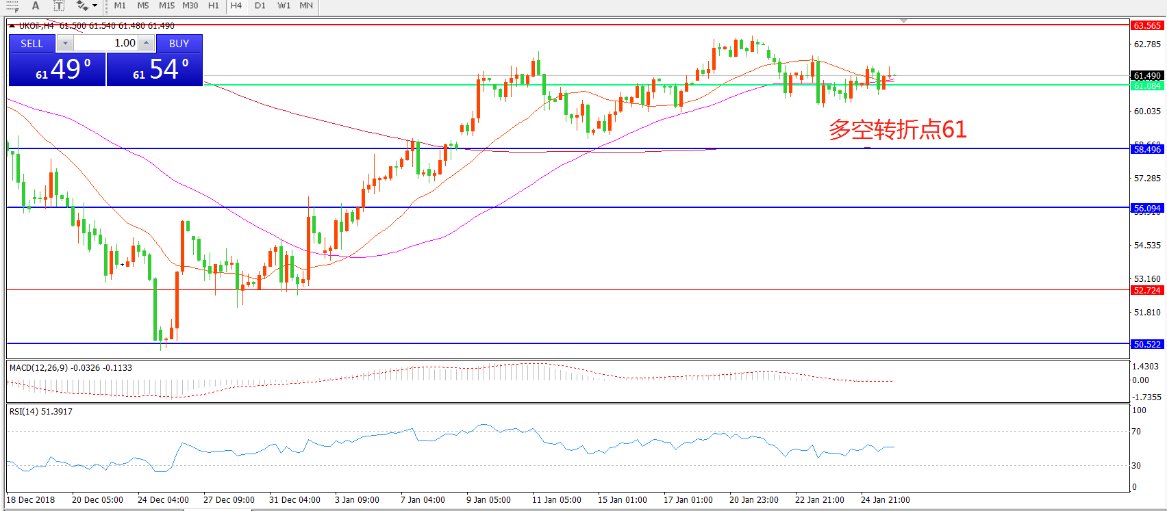 多空转折点:61.00