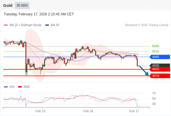在 4985 之下,看跌,目标价位为 4915 ,然后为 4878 。