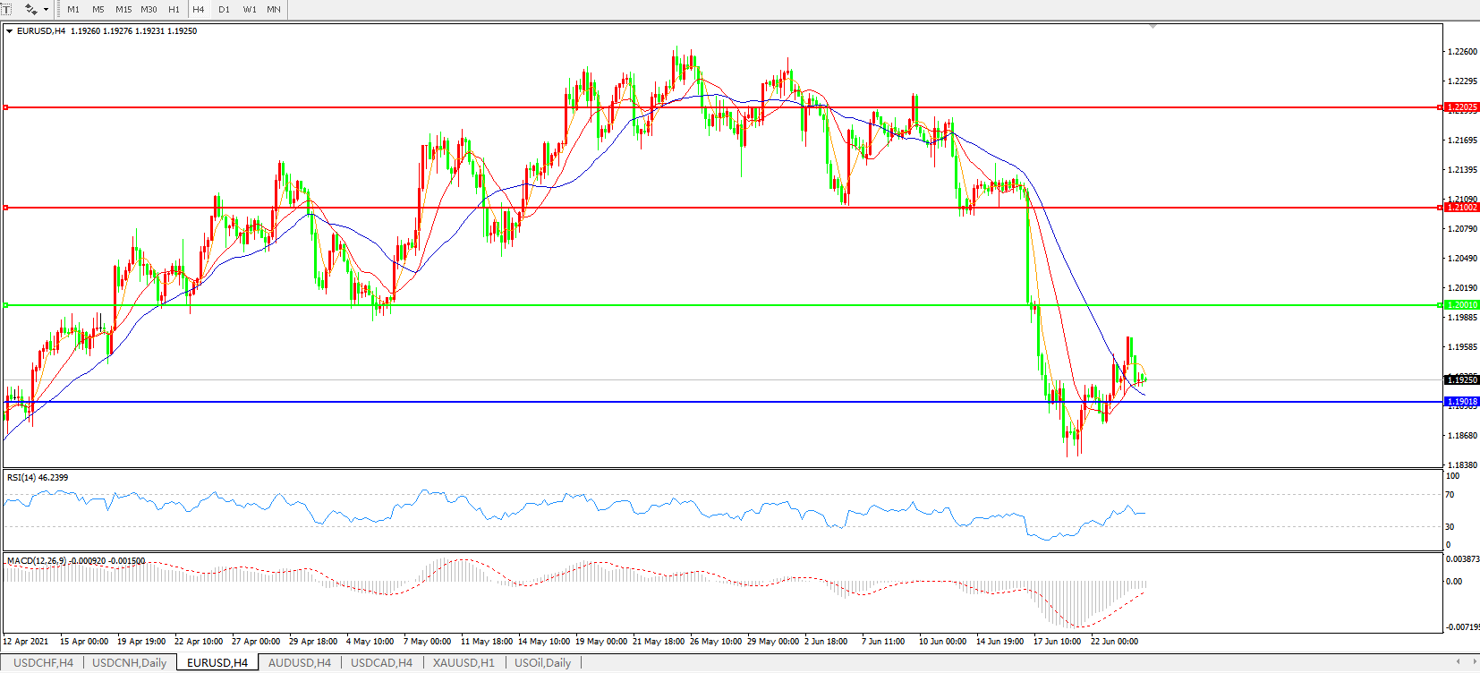 欧元兑美元EURUSD 4小时图:
