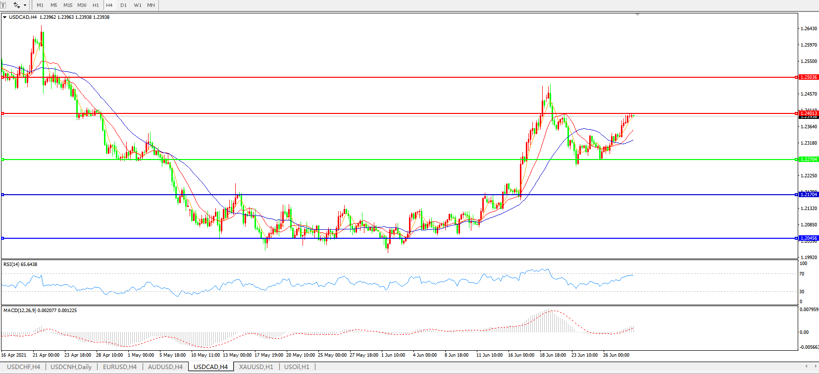 美元兑加元USDCAD 4小时图:
