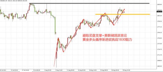 趋势上看,黄金仍旧是完好的多头趋势,回调仍不改上行基调,日内1807一线为多空分水岭,在此位之上继续看涨至1830或更高点位。